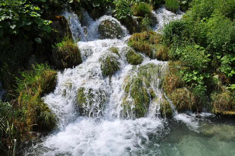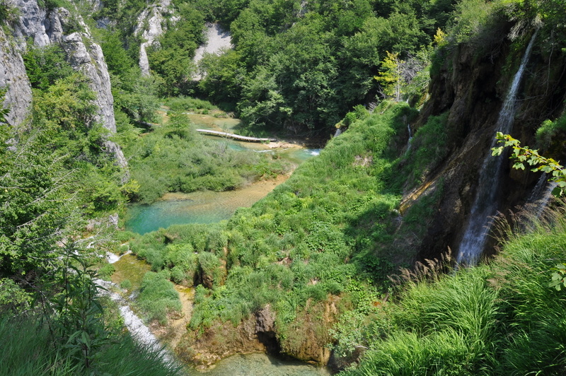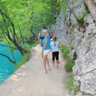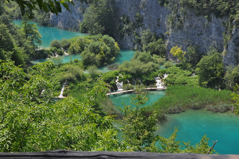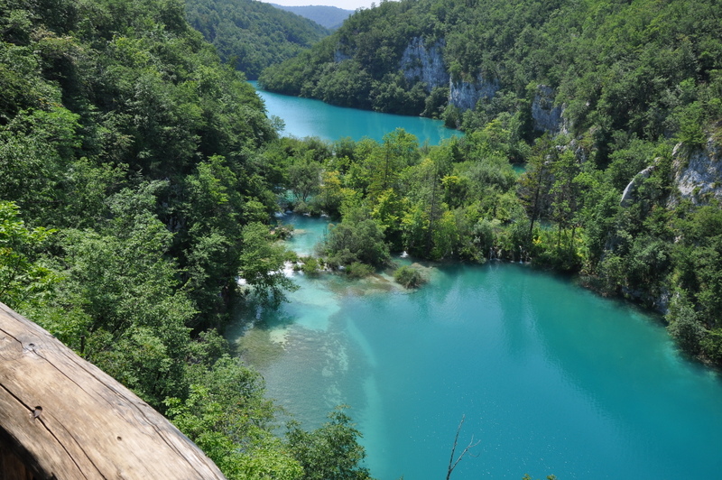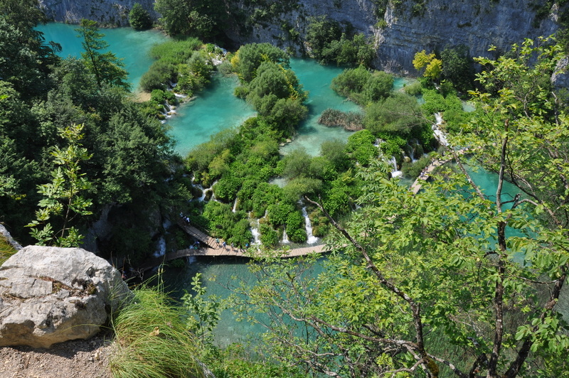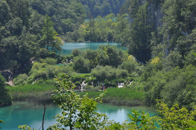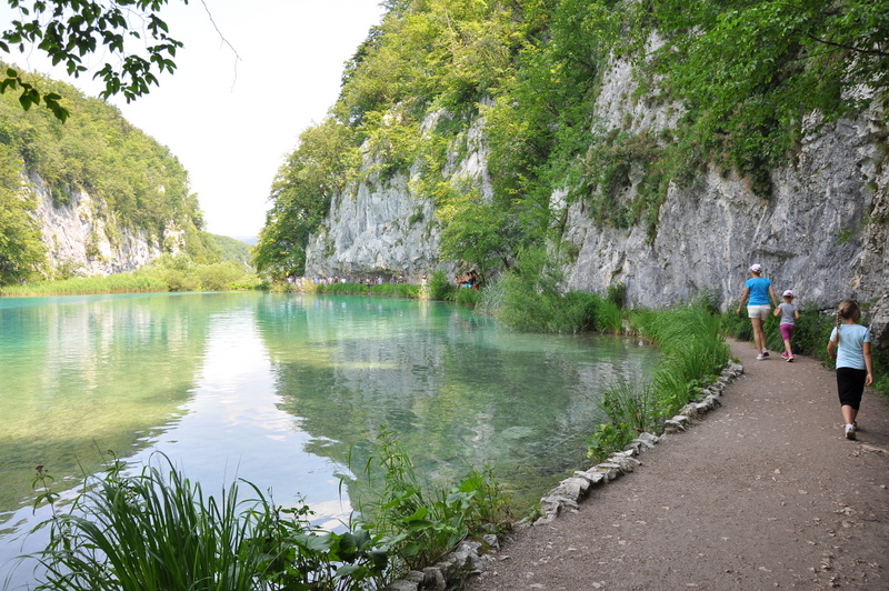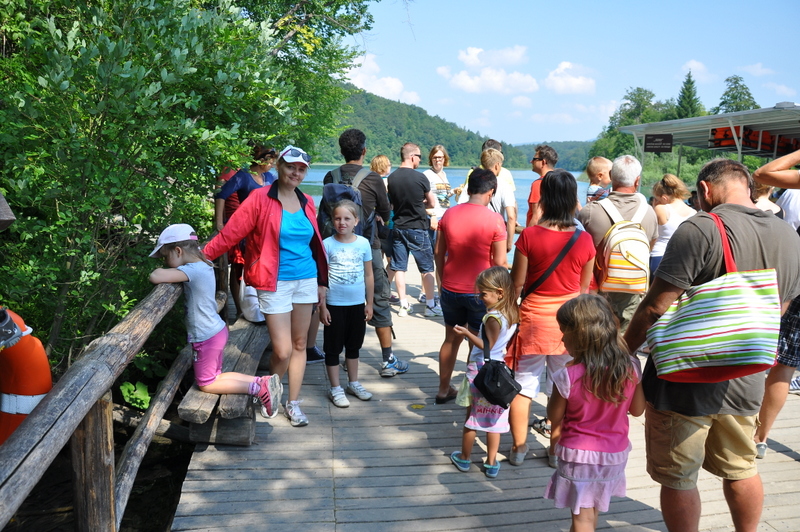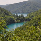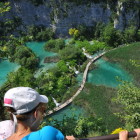 Następnego dnia rankiem dotarliśmy do drugiego wjazdu do Parku. Ponieważ moja kondycja fizyczna nie była dobra, wybraliśmy najprostszą, 3-3,5 godzinną trasę. Po zejściu na przystań, statkiem przeprawiliśmy się na drugą stronę jeziora, a następnie drugim statkiem przepłynęliśmy wzdłuż największe w tym rejonie jezioro. Ten krótki rejs przypomniał mi spływ Dunajcem, choć widoki były ciekawe, to jednak w żaden sposób nie mogły dorównać tym ostatnim z Dunajca. Jezioro położone jest wśród wzniesień pokrytych lasem liściastym, ma krystalicznie czystą wodę, w której widać rybki. Jednak prawdziwa niespodzianka czekała na nas już wkrótce. Po rejsie, ścieżka prowadziła do kolejnych mniejszych jezior, których kolor wody w słoneczny dzień jest bajkowo turkusowy. Plitvickie jeziora, to kilka jezior położonych na różnych poziomach połączonych ze sobą bajkowymi wodospadami. Trasa wiedzie wzdłuż brzegu kolejnych jezior, które otoczone są skałami wapiennymi. Widoki koją duszę i ciało. Ciepłe barwy skał, jeziora i roślinności tworzą harmonię i piękno, dlatego tutaj można odpocząć i się „wyłączyć”. Miejsce jest kameralne, nie przytłacza rozmiarem i można się nim prawdziwie zachwycić.