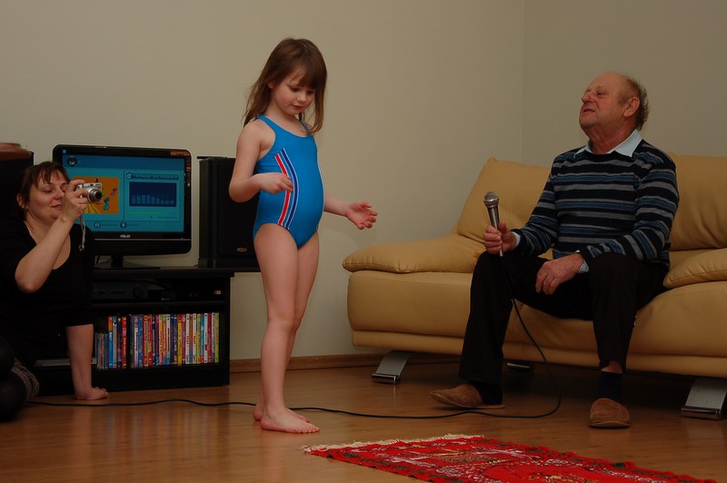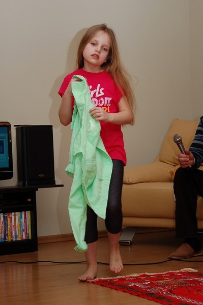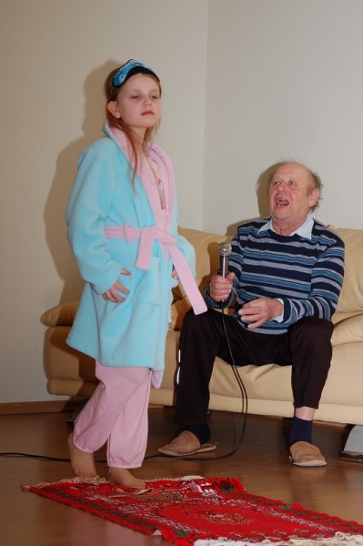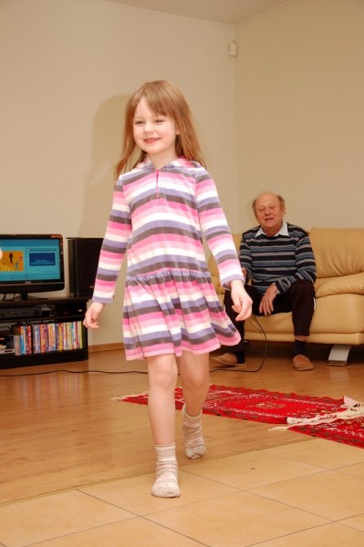 Dziewczyny dostały fantastyczne ubrania od babci Marylki, dziadka Olka i Cioci Ani. Zaczęły po kolei przymierzać i pokazywać się w nowych sukienkach jak na pokazie mody. Stąd powstał pomysł, żeby urządzić zabawę z prawdziwym modelkami, obsługą modelek oraz konferansjerem i fotografami. W rolę modelek wcieliły się oczywiście Juleczka i Marlenka. Obsługą modelek została babcia Marylka i pomagała w przebieraniu, doborze odpowiednich rekwizytów do strojów itp. Konferansjerem był dziadek Olek, a światło ” fleszy” zapewnił Paweł i ja jako jego asystentka :). Film powstał w wytworni: uradowani.com.pany :)