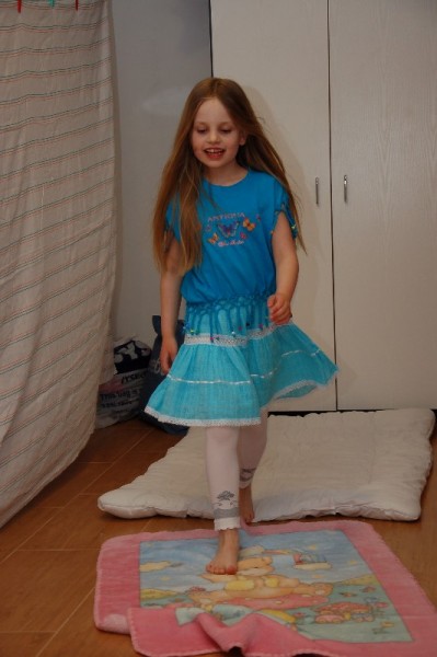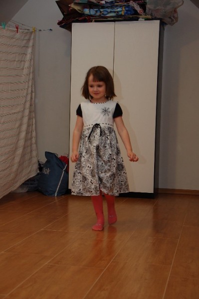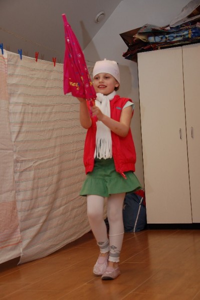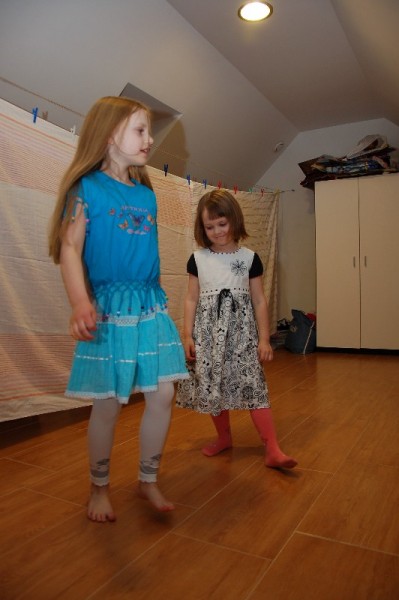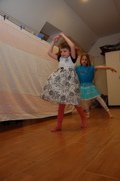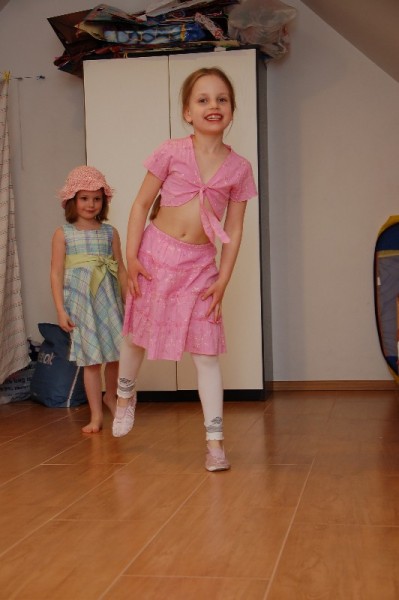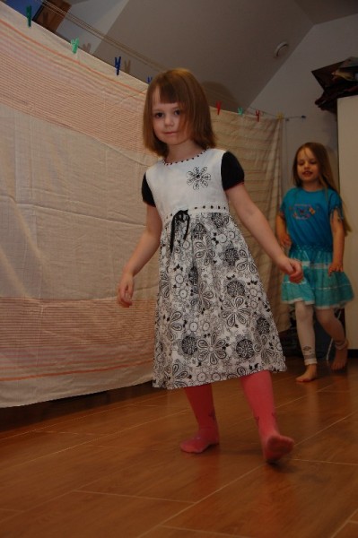Dopełnieniem niedzieli pełnej wrażeń był pokaz mody zaprezentowany przez Juleczkę i Marlenkę. Wiedzieliśmy, że dziewczynki od jakiegoś czasu przygotowywały się do pokazu, ale efekt końcowy był dla nas bardzo radosnym zaskoczeniem. Wzdłuż „wybiegu” był rozwieszony parawan. Za parawanem przebieralnia i sprzęt audio (do każdego wyjścia był przewidziany inny podkład muzyczny!). Trudno to opisać. Oglądaliśmy pokaz z zachwytem i szeroko otwartymi oczami. Wielka szkoda, że nie mieliśmy akurat kamery.
