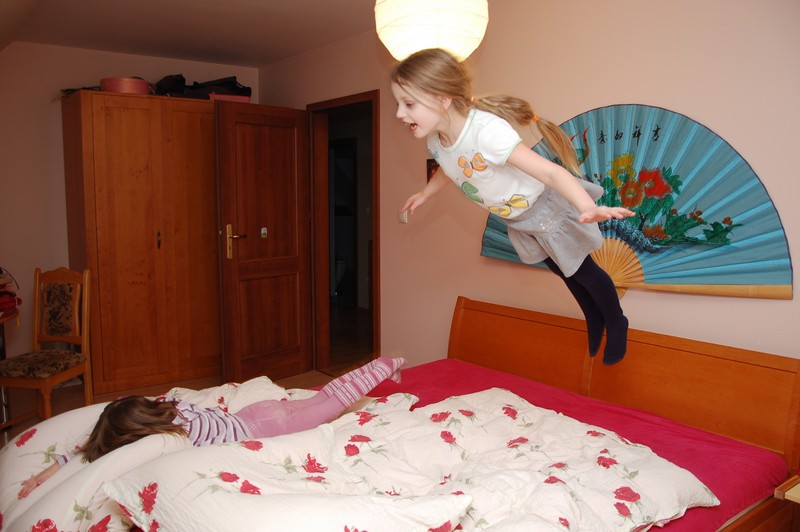 Dziewczynki skakały, aż się łóżko zarwało. :)