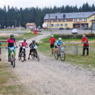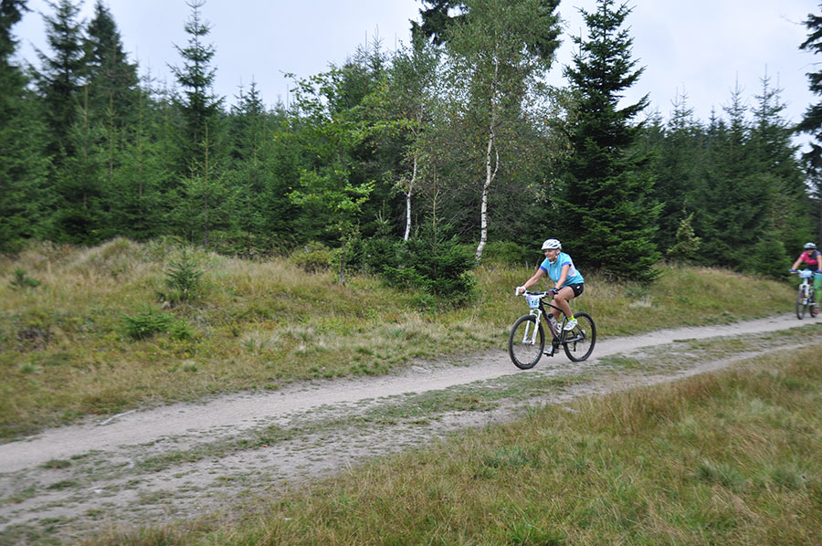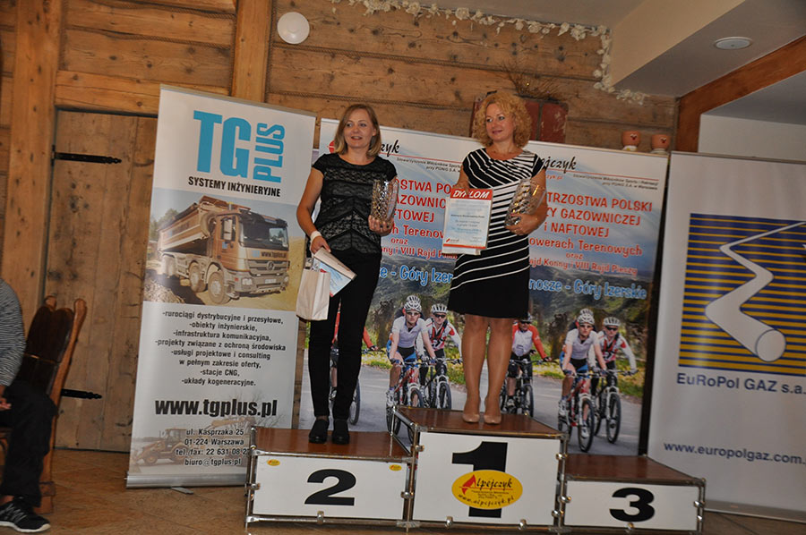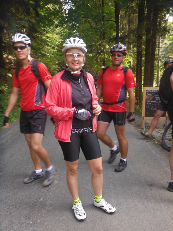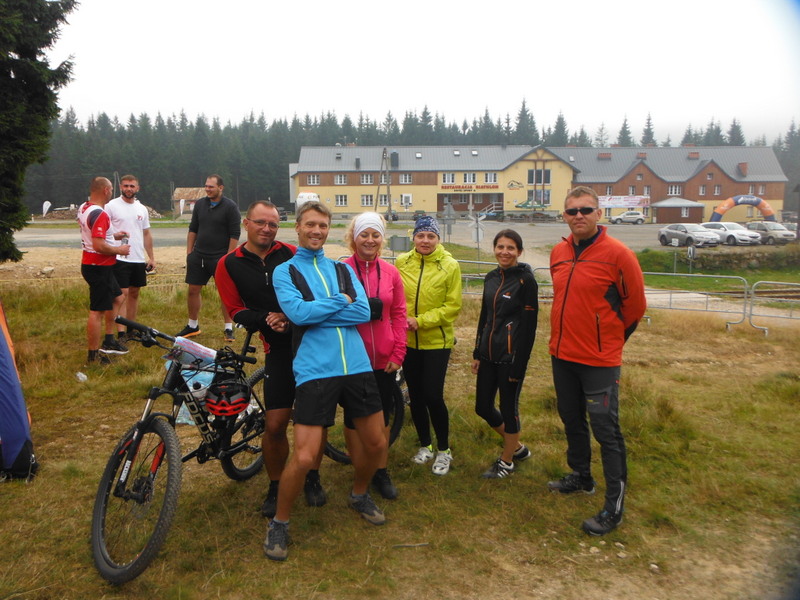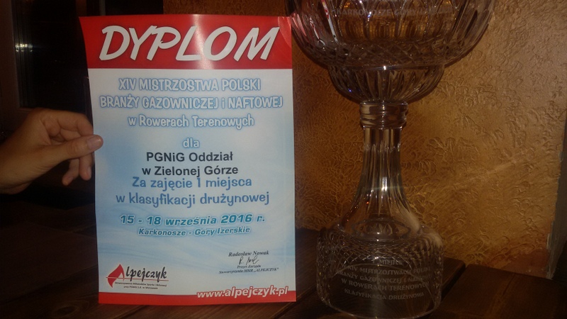 Co roku Stowarzyszenie Miłośników Sportu i Rekreacji Alpejczyk działający przy PGNIG organizuje kilkudniowy rajd rowerowy połączony z wyścigiem skierowany do pracowników GK PGNiG. Tym razem na wycieczkę rowerową wybrano góry Izerskie. W kilkudziesięcioosobowej grupie wjechaliśmy do schroniska Vosecka Bouda pokonując 670m wzwyż (suma podjazdów) na 26km trasie. Wzniesienia do pokonania dawały nam się we znaki, ale tempo było spokojne i na szczęście częste przerwy na trasie. Zdradliwe jednak okazały się zjazdy, podczas których bardzo szybko nabierało się prędkości. Podczas jednego z takich zjazdów do Harrachova niestety nie wyhamowałam na czas przed skręcającym ze swojego toru przewodnikiem i zahaczyliśmy się kierownicami. W rezultacie ja upadłam łamiąc paluszek prawej ręki. Moja wycieczka na tym wydarzeniu już się skończyła. Byłam bardzo rozżalona, ponieważ do wypadku nie doszłoby, gdyby przewodnik zachował zasady jazdy rowerem w grupie. Po opatrzeniu palca w szpitalu wróciłam do hotelu. Z płaczem niemal zadzwoniłam do Pawełka. Jak zawsze mogłam liczyć na wsparcie męża. Następnego dnia ustawiłam się na stracie obok trzech pozostałych (frekwencja słabiutka niestety) z zagiętym usztywnieniem palca i pojechałam. Przyjechałam druga, a do pierwszej brakowało mi 2,5 minuty. Wieczorem odbyła się uroczysta dekoracja zawodników. Za drugie miejsce otrzymałam piękny kryształ i wiele przydatnych wartościowych drobiazgów, no i przede wszystkim była satysfakcja, że się tak łatwo nie poddałam. :-)
