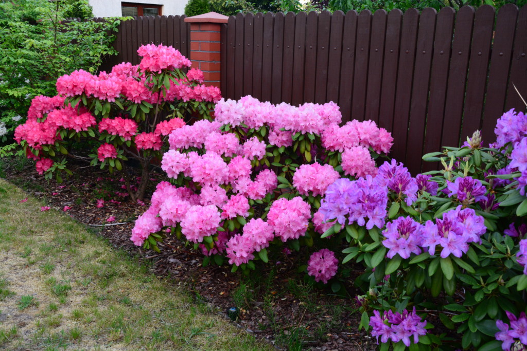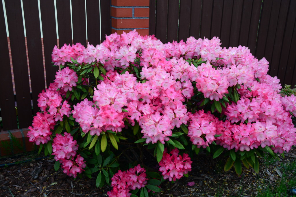 Nasze rododendrony w ogródku z roku na rok są coraz bardziej okazałe. Ten sezon jest dla nich wyjątkowo dobry. Mają niesamowicie dużo kwiatów, piękne kolory i zdrowe zielone liście. Dbamy o nie zakwaszając wiosną ziemię i użyźniamy nawozami. Kochamy je jak nasze pluszaki, a każdy z nich ma swoje imię nadane przez dziewczyny jak były jeszcze malutkie.