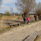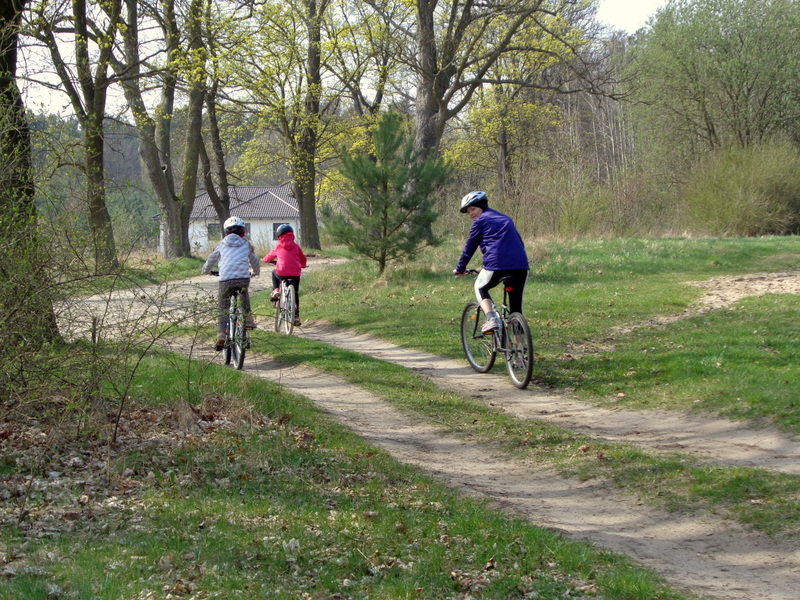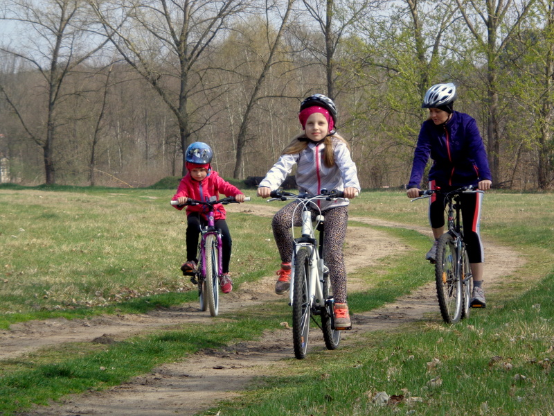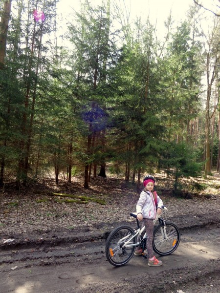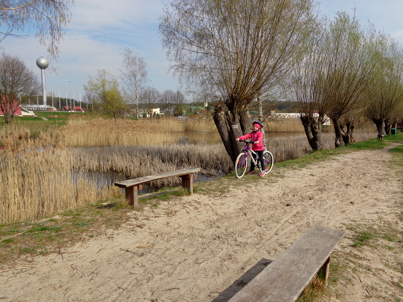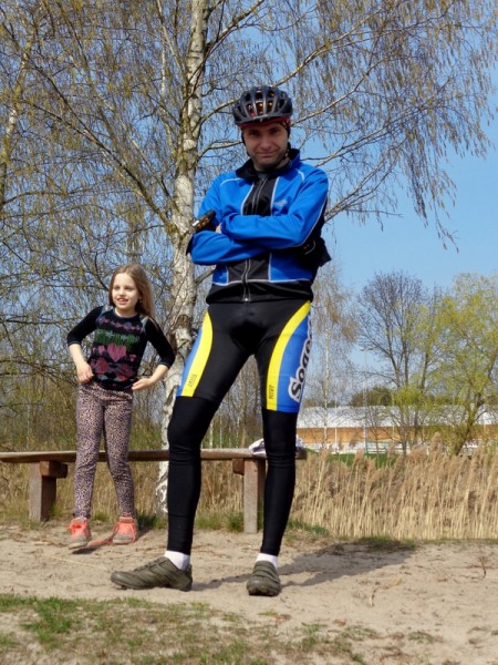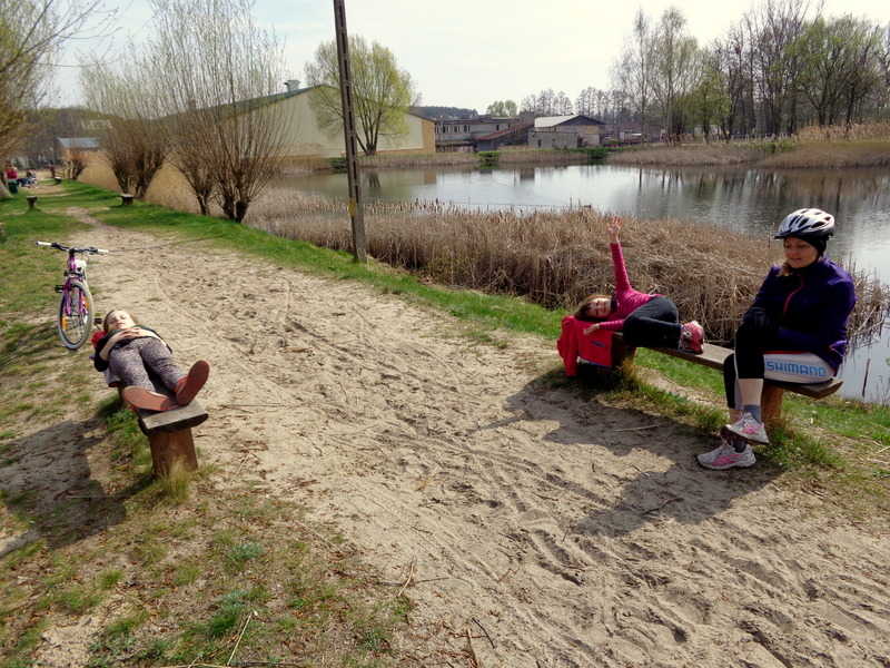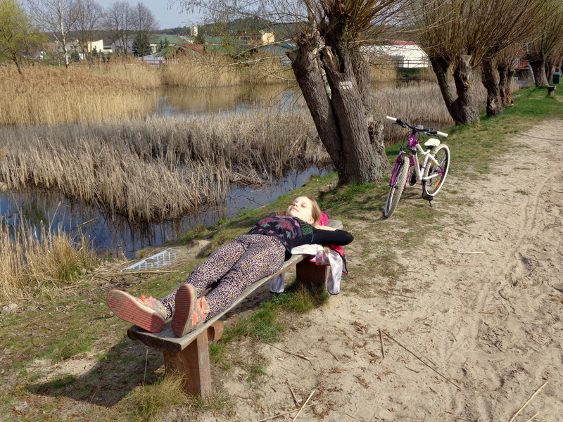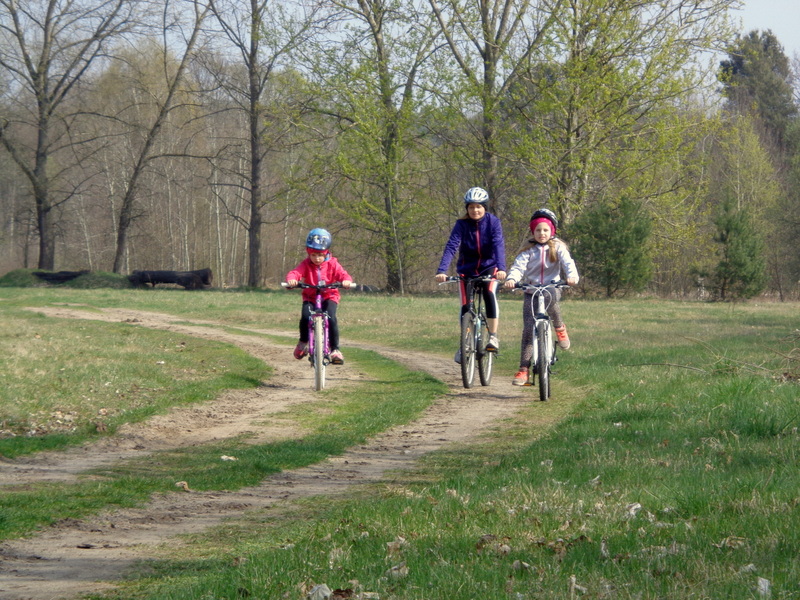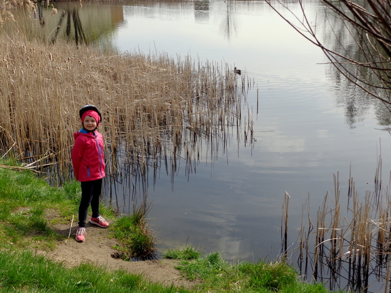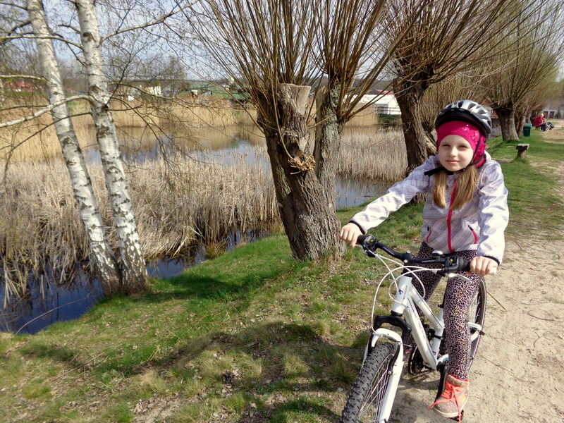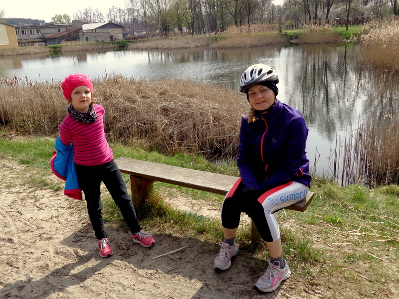 Oto nasz niedzielny wypad rowerowy do pobliskiego Ośrodka Sportowego w Drzonkowie. Na skróty wychodzi około 6 km przez las, więc wycieczka nie była zbyt forsowna. Dziewczyny dały sobie świetnie radę. Ich trud został nagrodzony, ponieważ mogły pobawić się tam na placu zabaw i „nabrać sił” na drogę powrotną. Pogoda nam dopisała. Pięknie świeciło słońce, było cieplutko jak na początek kwietnia, kaczki z pobliskiego stawu podpływały do nas w nadziei, że je podkarmimy. Przyroda już całkiem się obudziła, a w pogoni za motylem, czy ważką nasza Juleczka wpadła po kolana do wody. I tak oto spędziliśmy przyjemnie niedzielny dzień z przygodami.