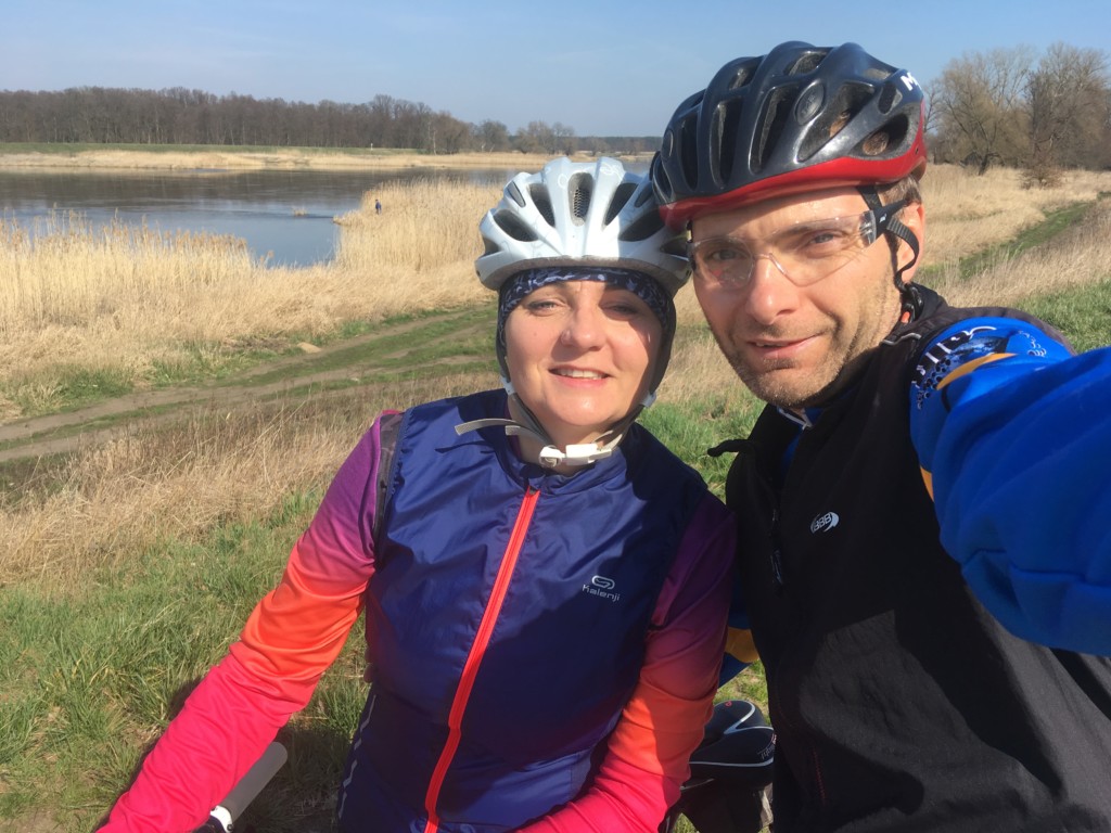 Docieramy lasami rowerem nad Odrę. Trasa 67km zajmuje nam 3 godziny.