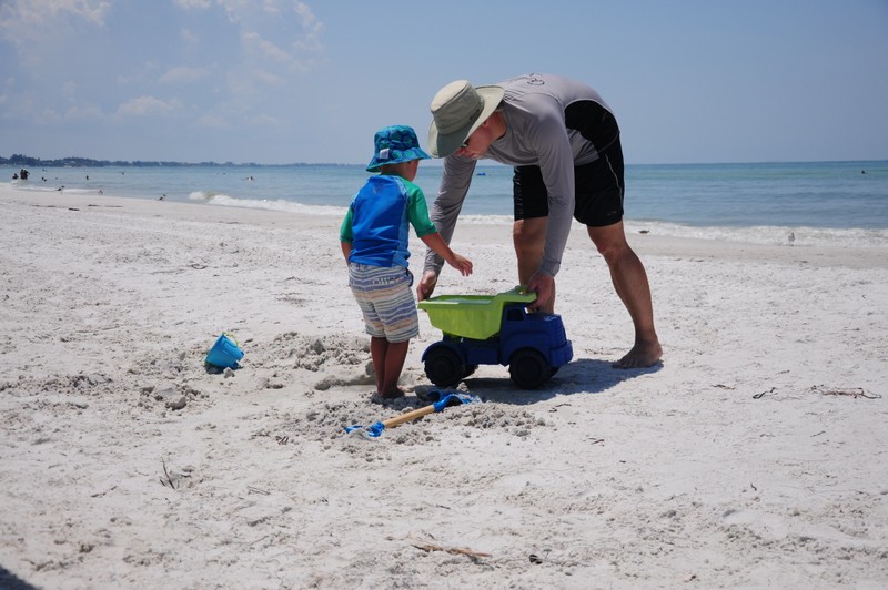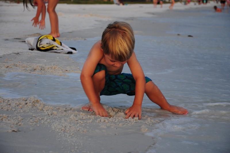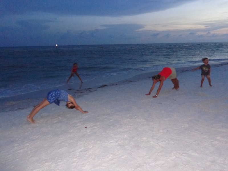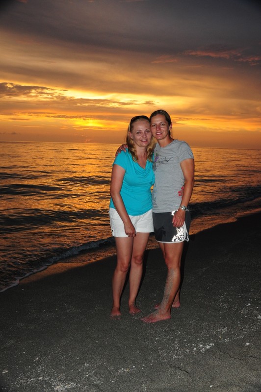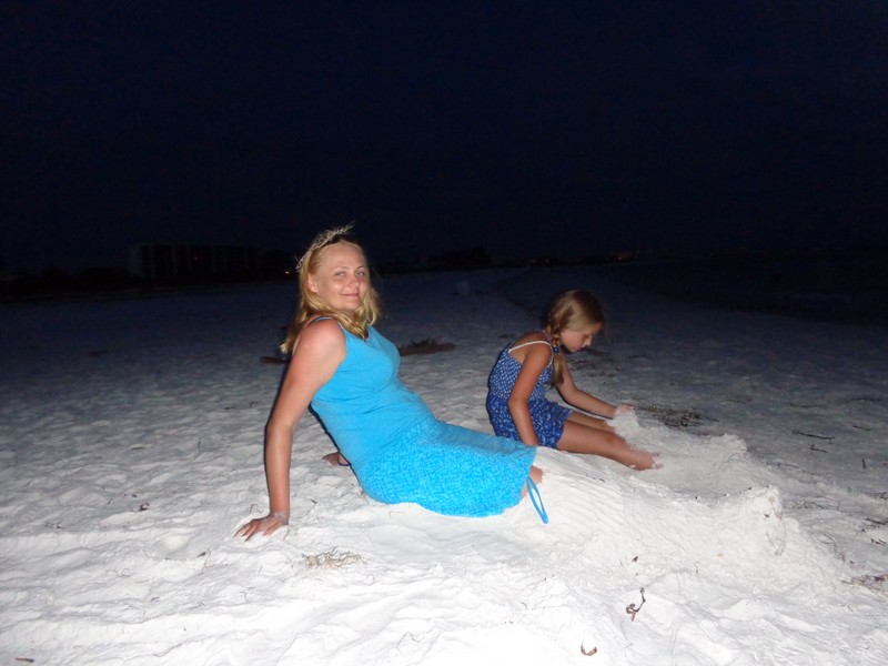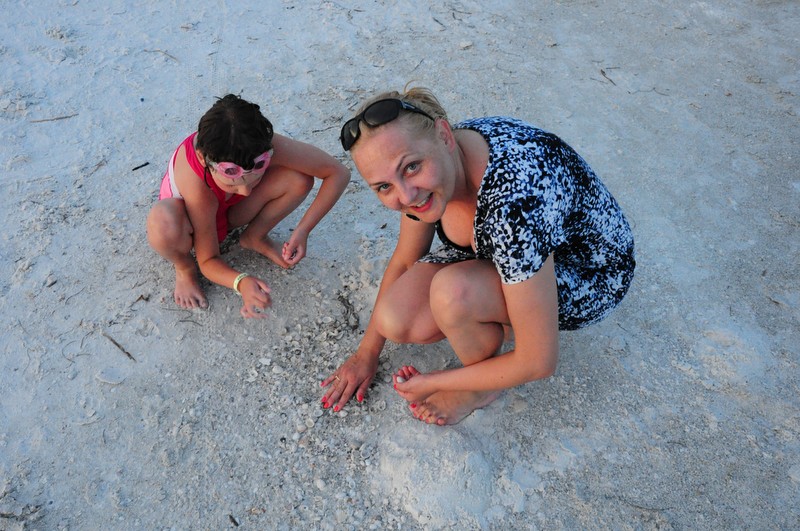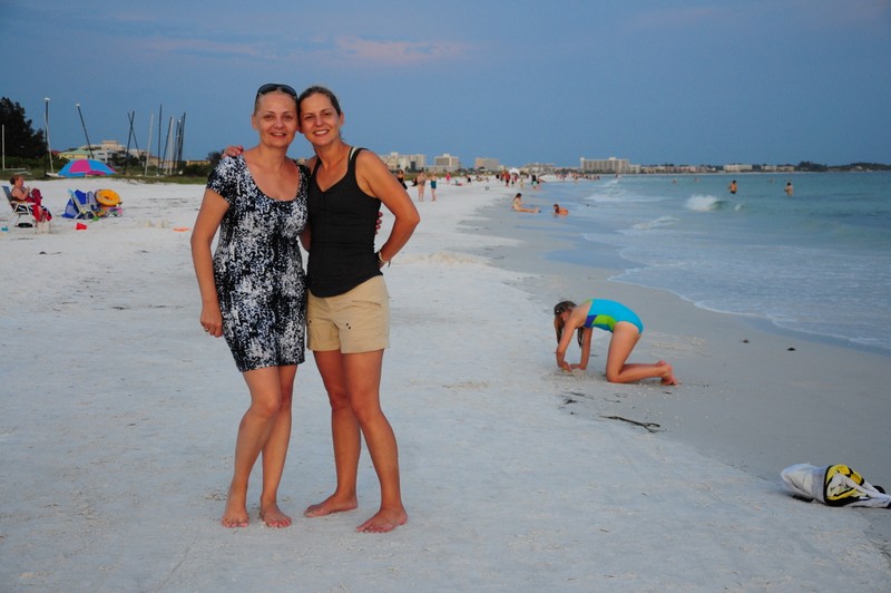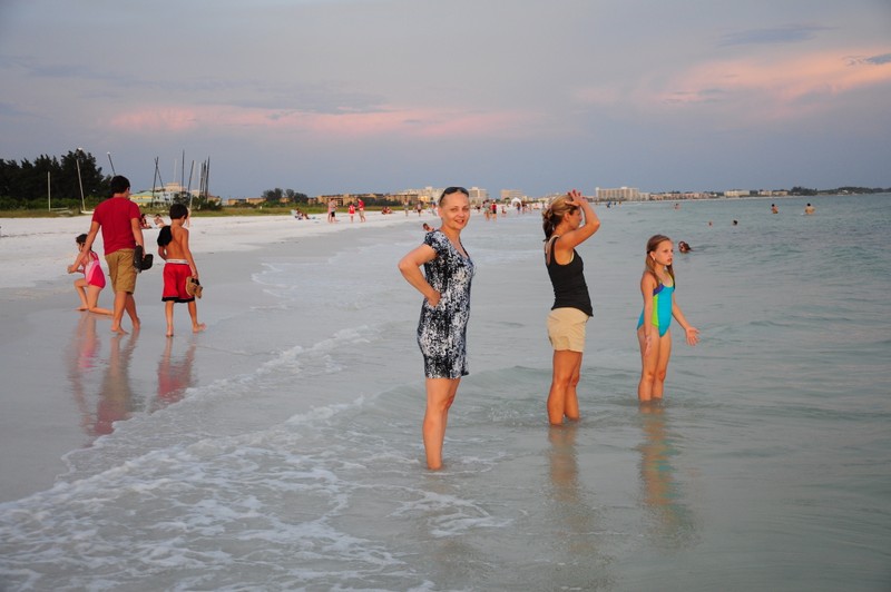 Po pobycie w hotelu Nickelodeon w Orlando pojechaliśmy w kierunku morza nad wybrzeże Siesta Key. Temperatura o tej porze roku w tej okolicy na Florydzie jest niewyobrażalnie wysoka, dlatego na plaży udaje nam się spędzić max 3 godziny na dzień. Plaże są długie, szerokie z białym drobnym piaseczkiem jak mąka, porośnięte wokół palmami. Woda – po prostu wrzątek – ponad 34 stopnie, bez fal i… rekinów. Niewiele też ludzi na samej plaży, ponieważ jesteśmy po sezonie. Spacerujemy plażą popołudniami i przychodzimy na zachód słońca. Na jednej z plaż w końcu udaje nam się wysupłać kilka minut tylko dla siebie, spacerując w świetle zachodzącego słońca, cieszymy się, że jest tu tak pięknie. Wracamy jednak szybko do dzieci i Ani, która też cieszy się z nami. Jesteśmy tutaj razem, choć przez chwilę, w te wakacje, by w końcu wrócić do własnych obowiązków, problemów-życia, ale teraz jesteśmy tutaj razem i możemy po prostu ze sobą być i spędzać wspaniale czas.