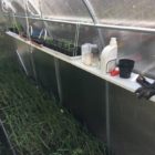 Marzymy o tym by mieć pomidory, ogórki, fasolkę, szczypiorek ze swojego ogródka. Jak tu jednak na piasku cokolwiek uprawiać? Konstrukcja szklarni powstała, ziemia nawieziona w drewnianych kasetonach jest, podłączenie do wody jest, pomidory  i inne rozsady od dziadka i cioci Mirki  są więc czekamy cierpliwie na efekty.