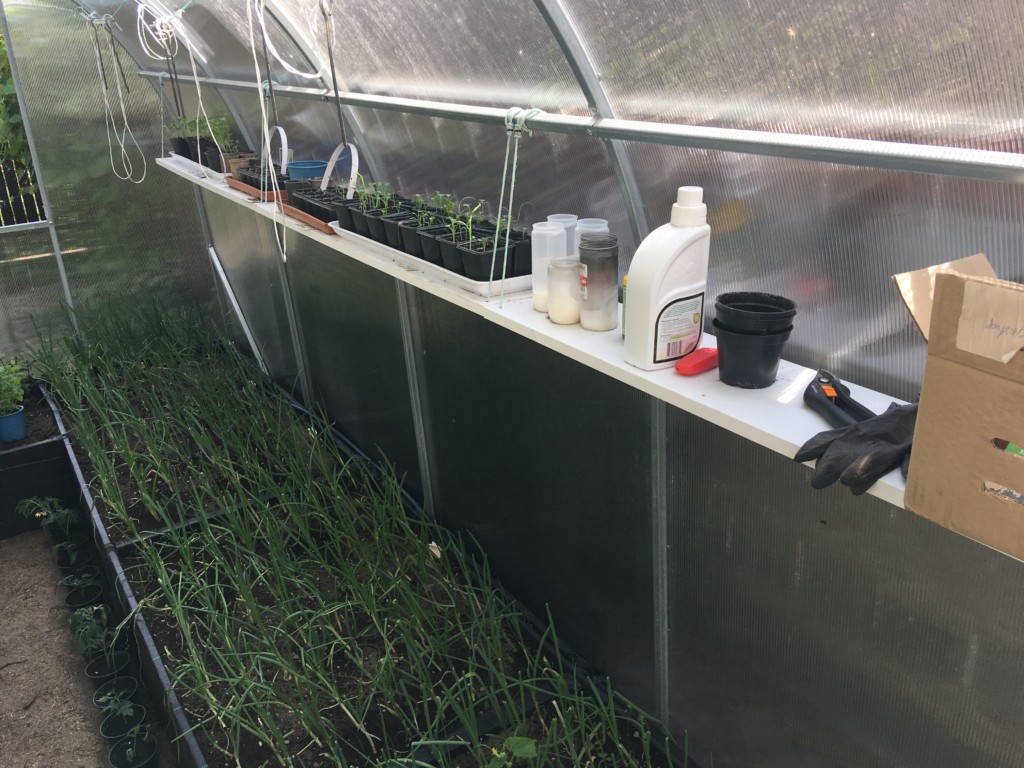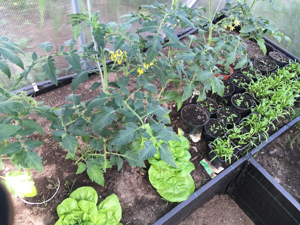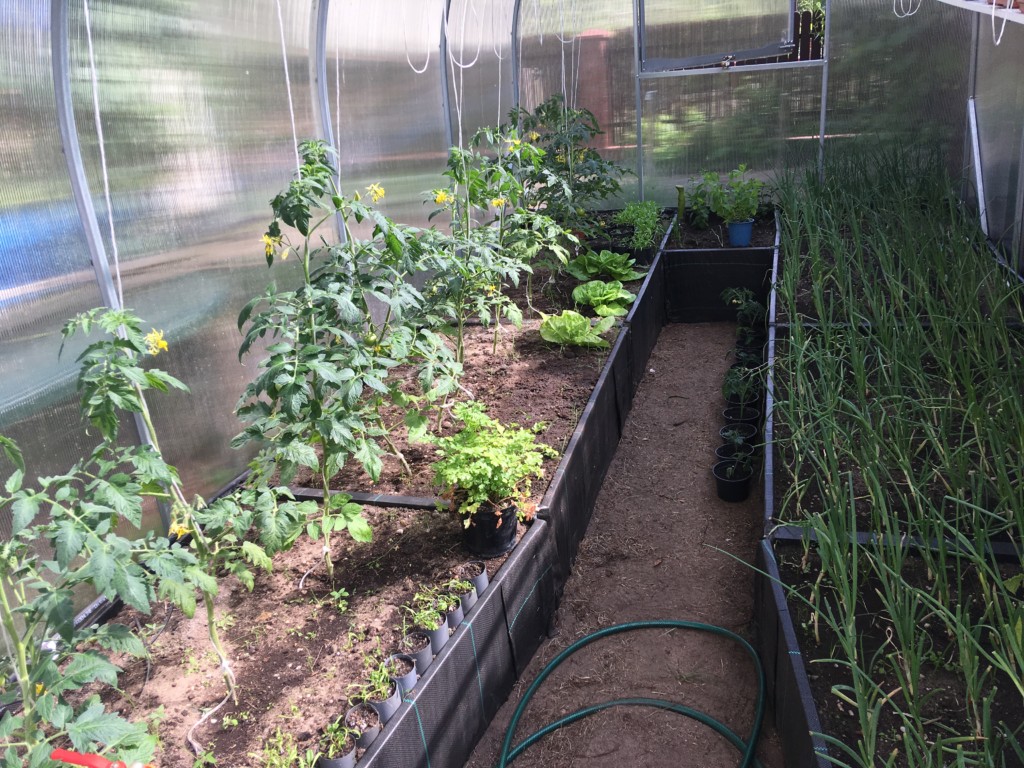 Marzymy o tym by mieć pomidory, ogórki, fasolkę, szczypiorek ze swojego ogródka. Jak tu jednak na piasku cokolwiek uprawiać? Konstrukcja szklarni powstała, ziemia nawieziona w drewnianych kasetonach jest, podłączenie do wody jest, pomidory  i inne rozsady od dziadka i cioci Mirki  są więc czekamy cierpliwie na efekty.