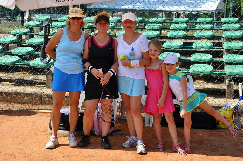Na pomysł z moim udziałem w turnieju tenisowym wpadł Pawełek po pierwszej w tym roku grze na korcie. Spontaniczne pomysły są często bardzo udane, więc na tydzień przed turniejem zgodziłam się na udział w zawodach. W końcu chodzi o fajne spędzenie czasu w weekend, dobrą zabawę i zachęcenie dziewczyn do tenisa. Mój poziom gry jest początkujący, więc o większych osiągnięciach nie było mowy. Zgłosiłam się do grupy początkującej i… pomysł wypalił. Pomimo potwornego upału, udało się wygrać… chyba ambicją, ponieważ techniki, oj brakuje…, ale nad tym popracujemy!!! Na moją korzyść była dwuosobowa widownia złożona z Juleczki i Marlenki, które mamusi bardzo kibicowały. Pawełek niestety musiał być bezstronny, ponieważ sędziował mecze, ale ja i tak czułam jak bardzo mi kibicuje, :) na marginesie, siedząc w pełnym słońcu ponad 2,5 godziny. Bardzo dziękuję moje Kochanie za sędziowanie!!! Wbrew pozorom, forów ze strony sędziego nie było. :)