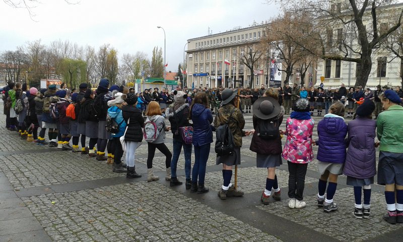Dzisiaj na Placu Bohaterów Westerplatte odbyły się uroczyste obchody Narodowego Święta Niepodległości. Zuchy oraz harcerze również brali udział w obchodach więc nie mogło zabraknąć Julii i Marlenki.