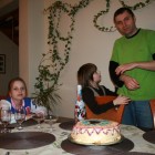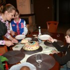 Chciałyśmy zrobić solenizantowi niespodziankę i dzień wcześniej przygotowałyśmy pyszny tort tiramisu. Dziewczynki chętnie udekorowały tort lukrem, tak że ostateczny wygląd był wyśmienity, zresztą smak też (przepis mamy opanowany z dziewczynami).