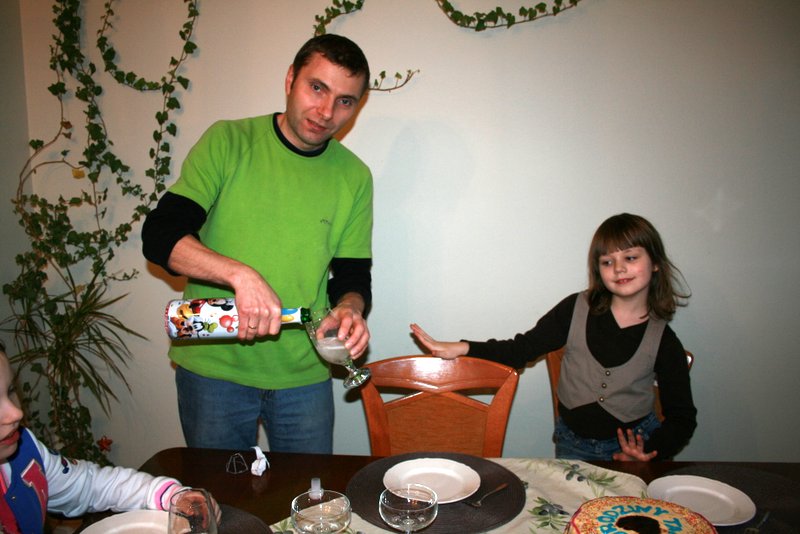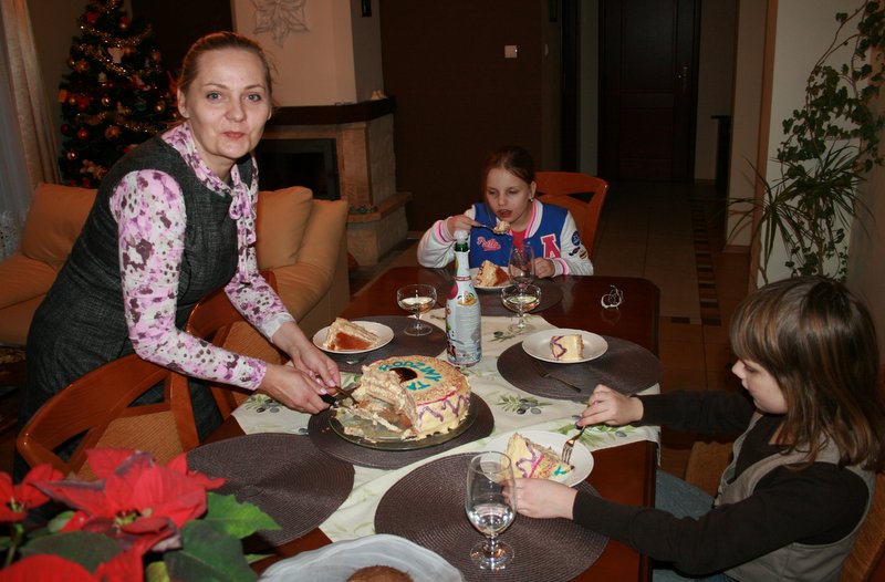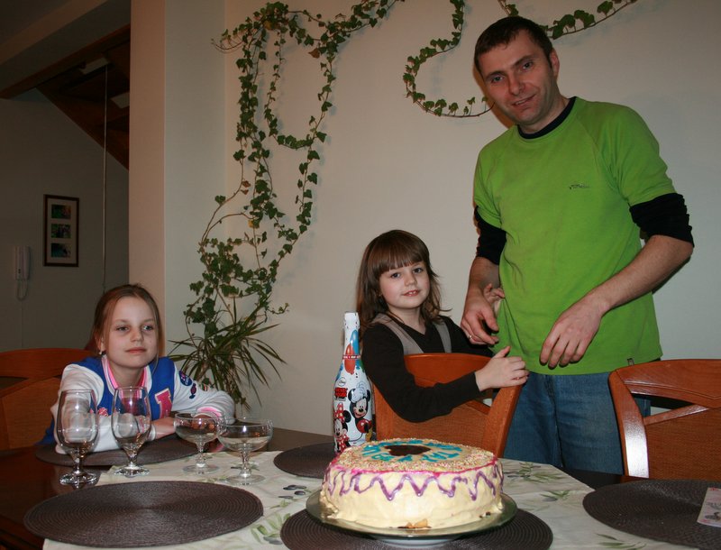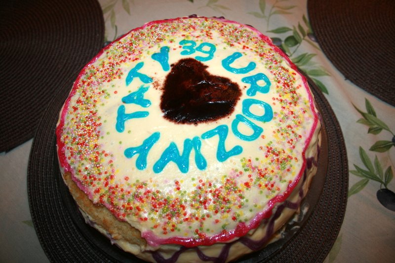 Chciałyśmy zrobić solenizantowi niespodziankę i dzień wcześniej przygotowałyśmy pyszny tort tiramisu. Dziewczynki chętnie udekorowały tort lukrem, tak że ostateczny wygląd był wyśmienity, zresztą smak też (przepis mamy opanowany z dziewczynami).