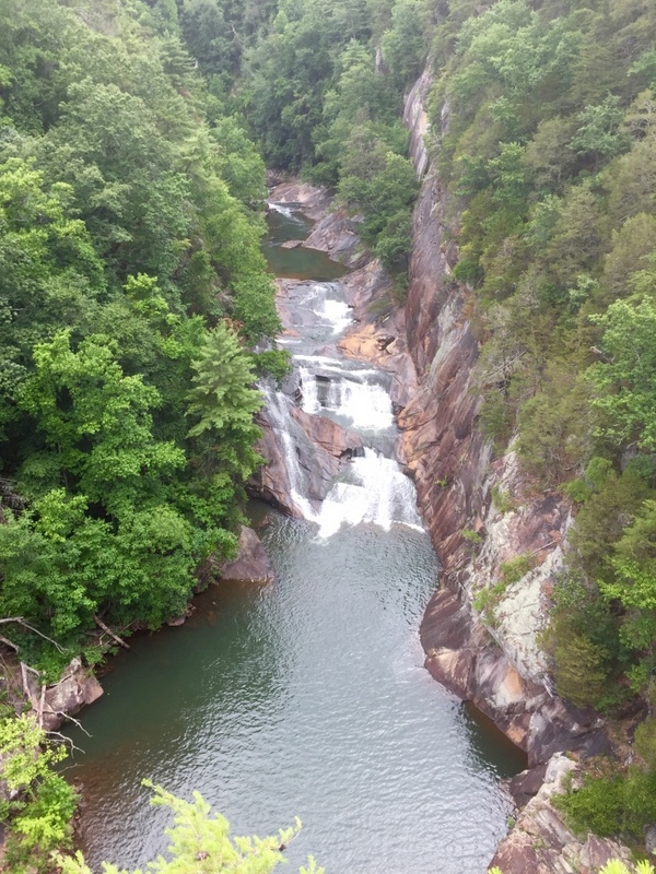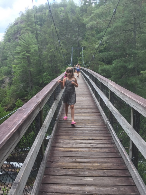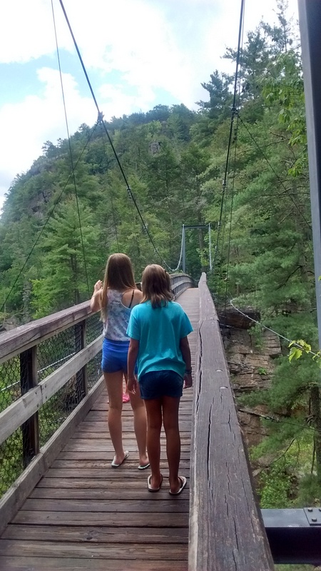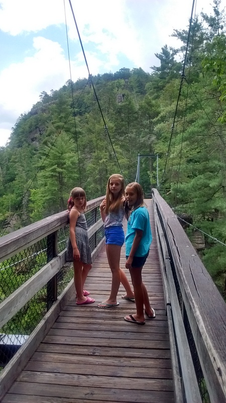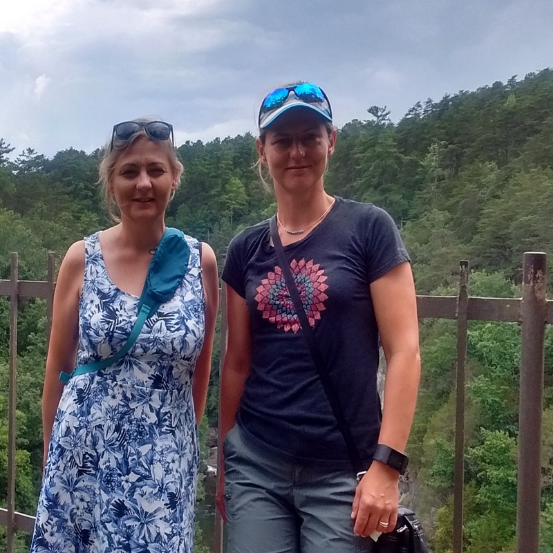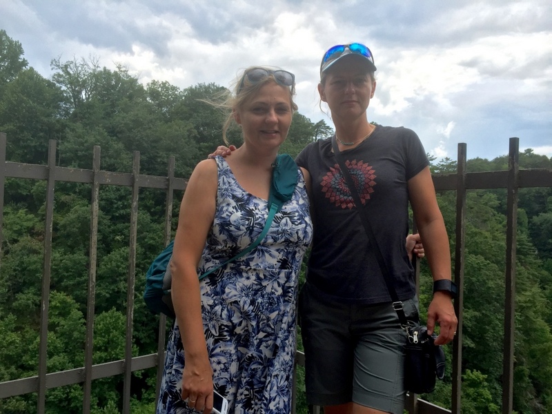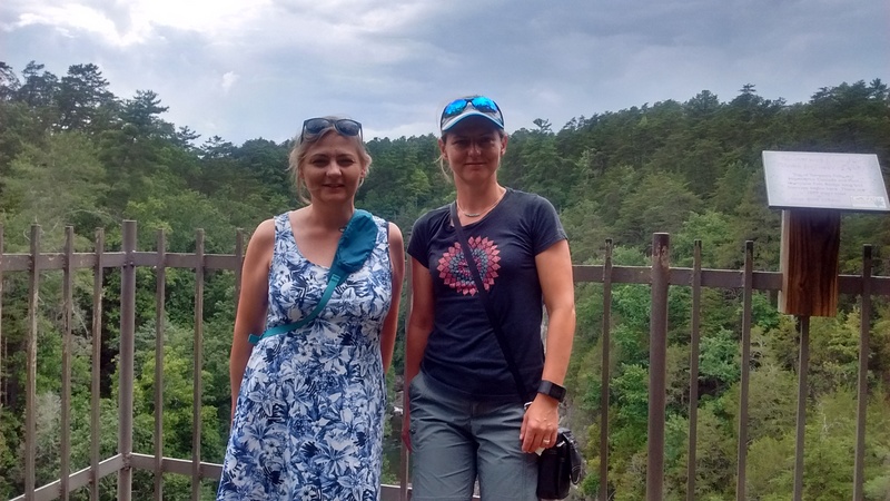 W drodze powrotnej czekała nas jeszcze jedna niespodzianka -Tallulah. Urocze miejsce z przepięknymi wodospadami. Do wodospadów docierało się ścieżką wytyczoną sztucznie. Dzięki temu tak piękne miejsca zostały udostępnione każdemu, kto miał wystarczająco samozaparcia, aby pokonać wiele schodów w dół, a potem oczywiście do góry. Na terenie parku zamieszkuje wiele gatunków zwierząt. Dla przybywających tutaj na chwilę, trudno je dostrzec, nawet podczas długiej wędrówki, dlatego wykonano idealne ich repliki i udostępniono zwiedzającym Tallulah w centrum informacji. Dziewczynom tak się spodobały te zwierzaczki, że wszystkie je sfotografowały.