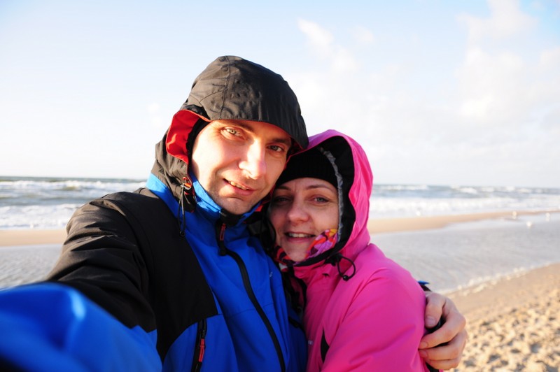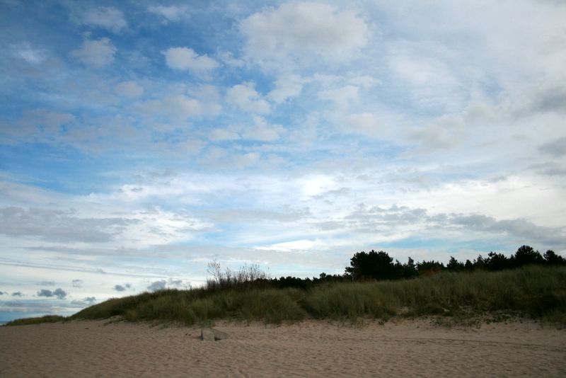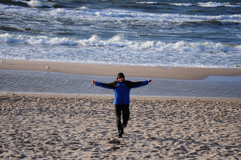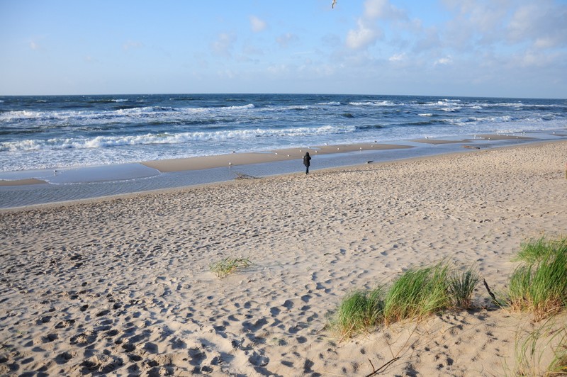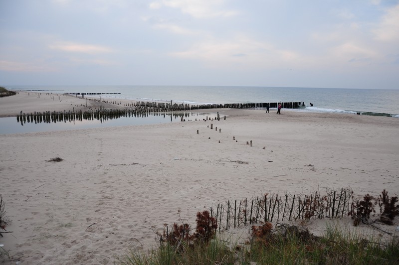 Jestem na wczasach profilaktycznych w hotelu Geovity w Dąbkach. W ramach profilaktyki zdrowia mam wykonywane różne zabiegi, a dodatkowo jest dostępny basen, jakuzzi, bicze wodne i solanka. Trenuje też sobie na rowerze stacjonarnym i chodzę na spacery nad morze. Odpoczywam i zdrowieję :) Ludzi mało, więc wszędzie cisza i spokój. Pogoda nie zachęca do spacerów, jest wilgotno póki co, ale mam nadzieję, że się poprawi i wtedy nie tylko przez okno powdycham jodu. Plaże wspaniałe, szerokie, jasny piaseczek i dziko. Po 30 minutach spaceru zostaje się samemu na plaży. Oto kilka zdjęć ze spaceru