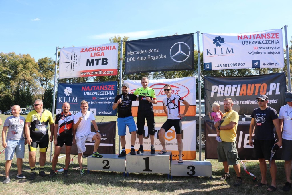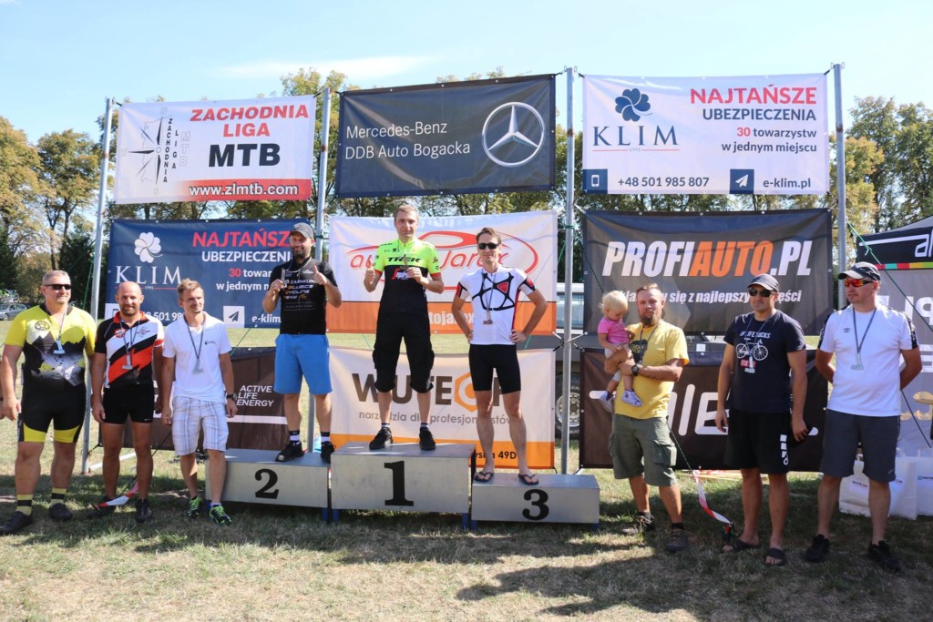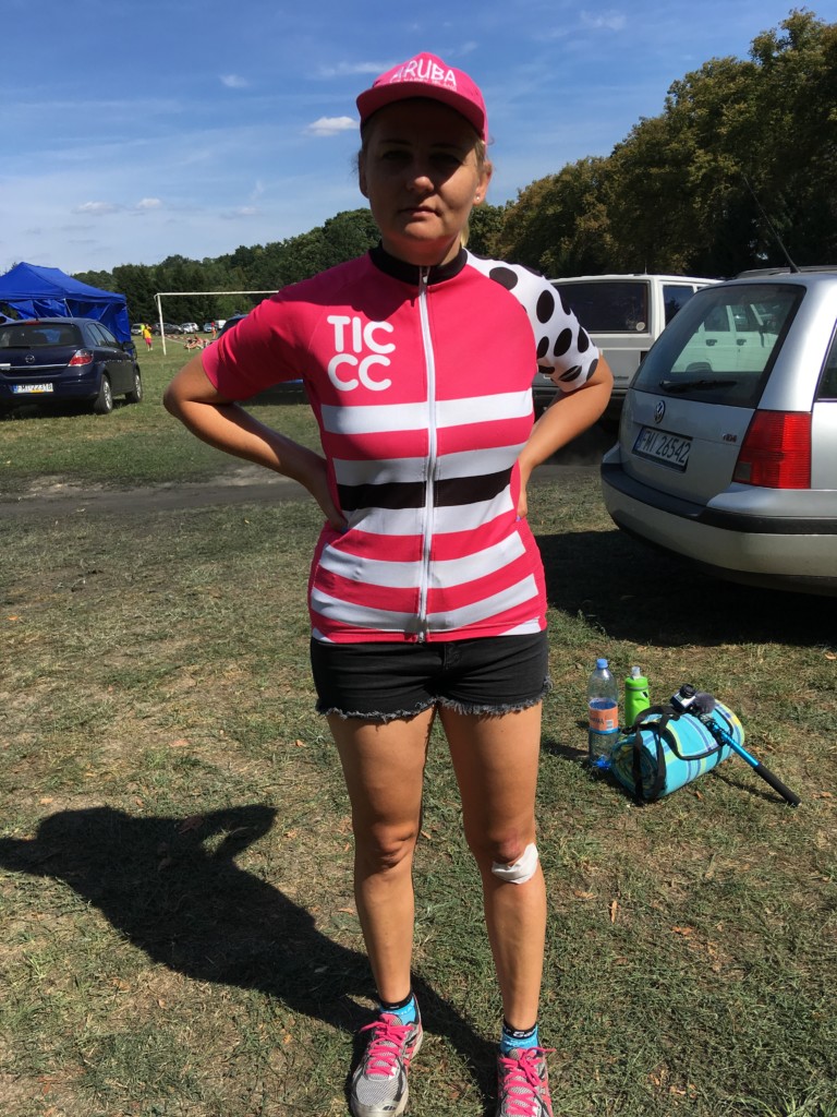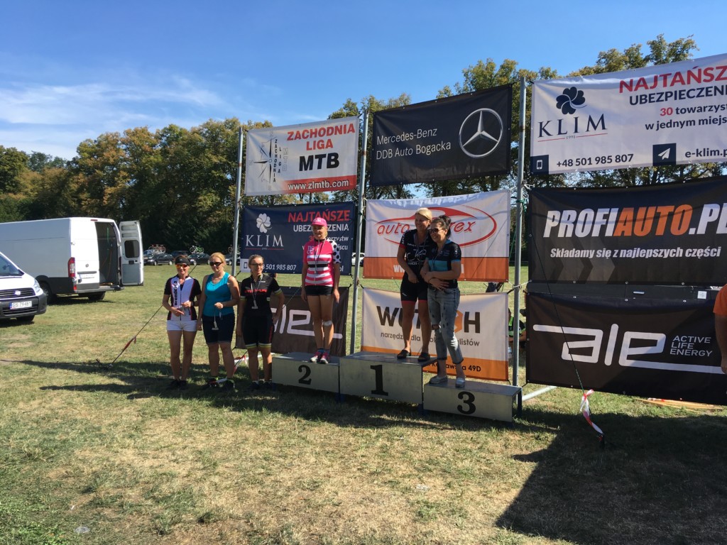 Bledzew, to kolejny etap wyścigów MTB w ramach Zachodniej Ligii MTB. Trasa okazała się niezwykle ciekawa z uwagi na techniczne elementy w postaci tzw. singli, czyli wąskich krętych ścieżek leśnych i najbardziej malownicza wiodąca wzdłuż jezior. Paweł już tradycyjnie wygrał w swojej kategorii wiekowej, ale też osiągnął wielki sukces przyjeżdżając na drugim miejscu wśród wszystkich mężczyzn. Ze mną było trochę niespodzianek. Po pierwsze już na rozgrzewce przed wyścigiem zgubiłam się i przejechałam 12km. Po drugie ustawiłam się bardzo daleko od czołówki dziewczyn, bo już wszyscy inni się ustawili. Po trzecie i najważniejsze na 2 km zawodniczka najechała na moje koło i przewróciła mnie. Uchwyt kamery potrzaskany, łańcuch zakleszczony musiałam sobie naprawić, no i obolała i zrezygnowana z myślą, co z tą kamerą. Ostatecznie dojechałam na czwartym miejscu i drugim w kategorii, ale tutaj mogłam naprawdę uzyskać dobre miejsce bez tych niespodzianek. Obolała wkulałam się na podium ;) Z racji wysokiej temperatury dekoracja była męcząca i dłużyła się. Wyścig bardzo udany dla Pawła i nieudany dla mnie. Tak bywa…