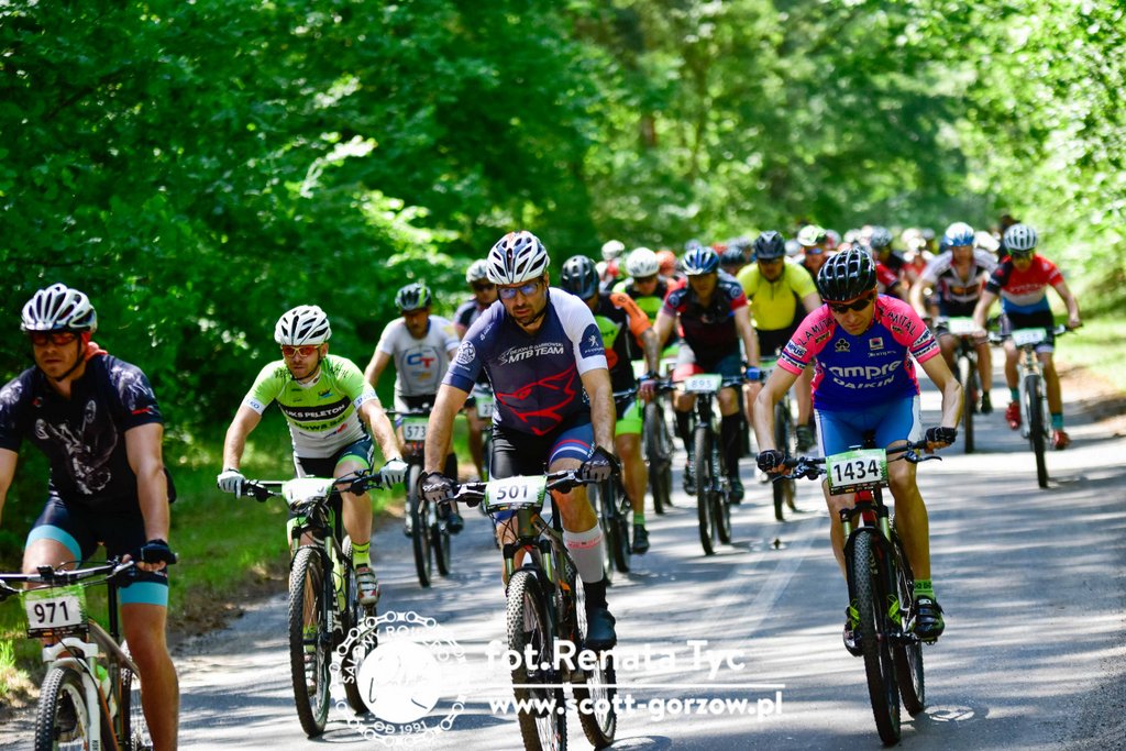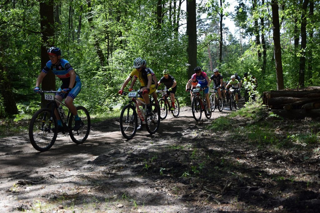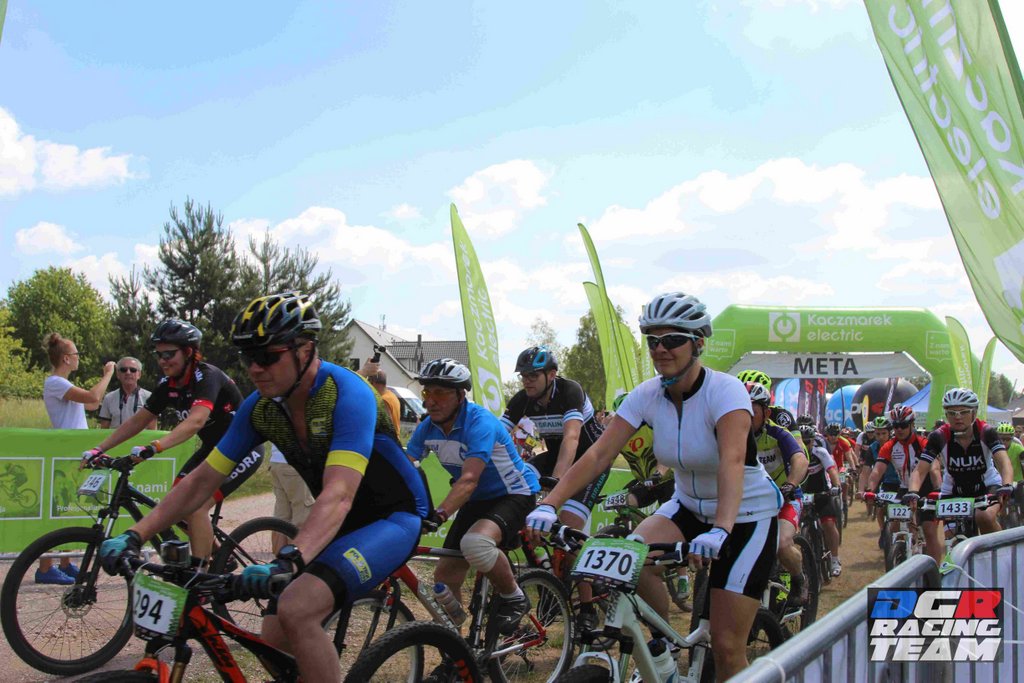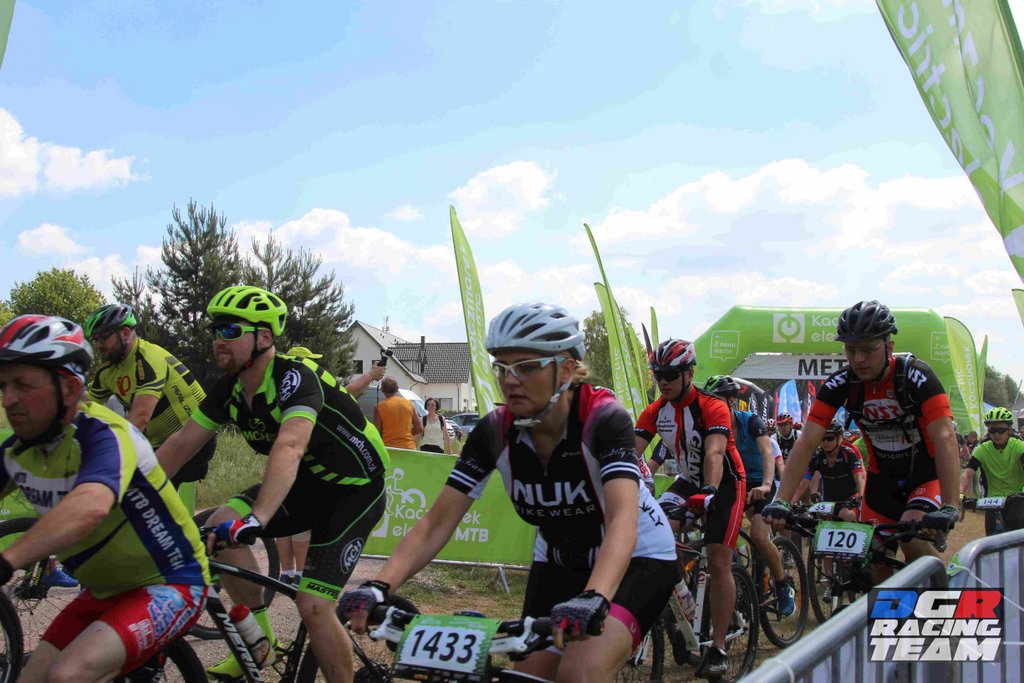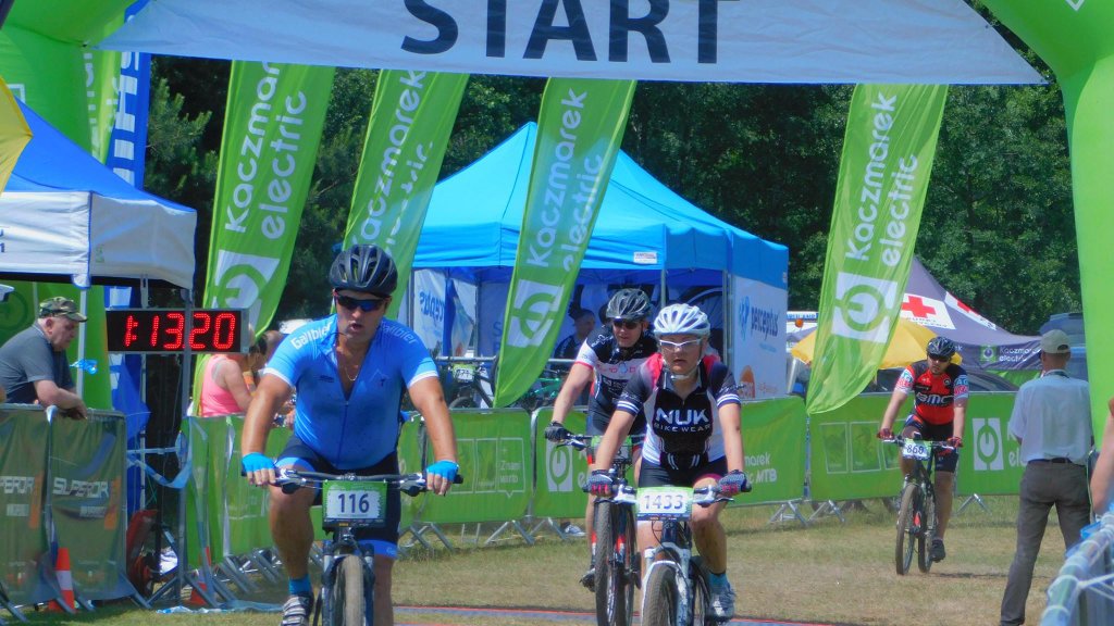 Dzisiaj uczestniczyliśmy w wyścigu rowerowym w Zielonej Górze. Wyścig odbył się w ramach cyklu maratonów MTB Kaczmarek Electric. Jak do tej pory edycje w Zielonej Górze były na tyle trudne, że nie decydowaliśmy się na uczestnictwo w nich (głównie z mojego powodu).Tym razem jednak trasa miała łagodniejszy profil i zdążyliśmy ją poznać przed wyścigiem, co ostatecznie utwierdziło nas w przekonaniu, że oboje damy sobie spokojnie radę. Do pokonania w terenie było 20km. Wystartowaliśmy z różnych sektorów: Paweł z 3, a ja z ostatniego 6. Dla wyjaśnienia wagi startu z sektora wyjaśnię, że start z poszczególnych sektorów odbywa się z odstępem dwuminutowym, a sektory te przydzielane są na podstawie dotychczasowych wyników w cyklu i mierzone stosunkiem czasu przyjazdu zwycięzcy (mężczyzny) do czasu osiągniętego przez zawodnika. Pawłowi udało się „przedrzeć” swoim wynikiem z Żar do 3 sektora i jechał z bardzo dobrymi, a ja pozostałam w 6. Zadanie miałam więc trudne, ponieważ to najliczniejszy sektor i bardzo zróżnicowany pod względem wytrenowania, techniki.