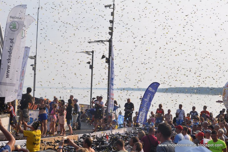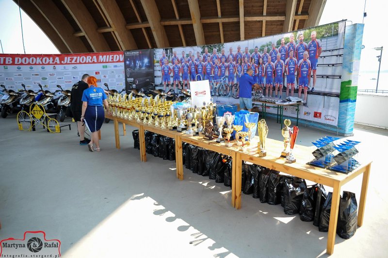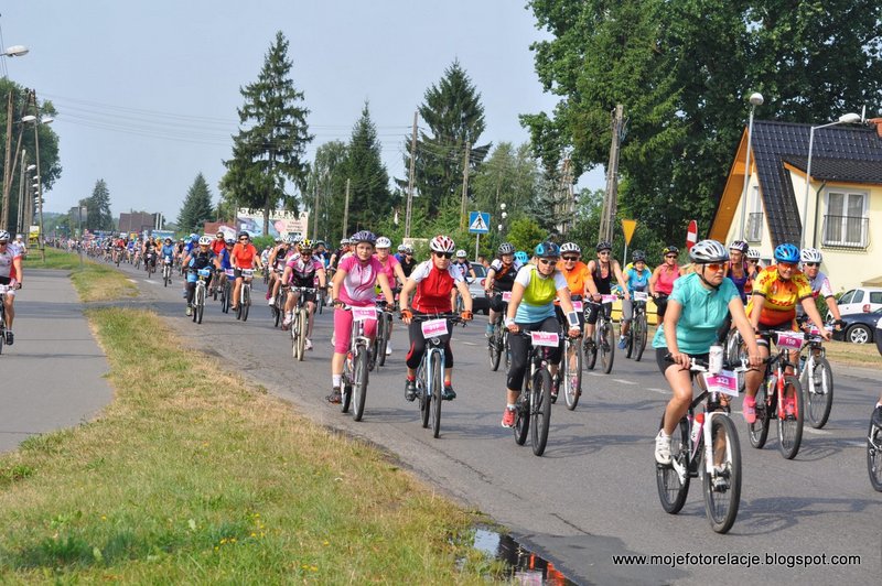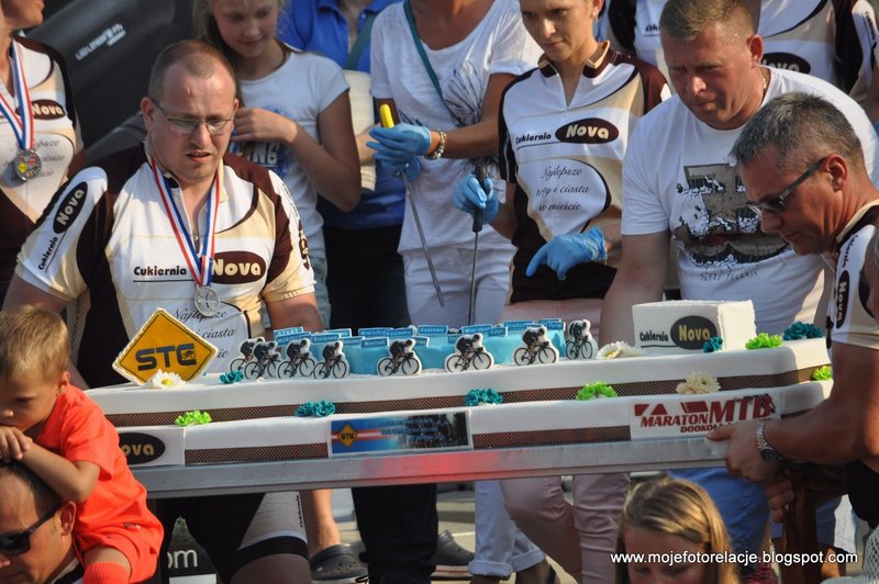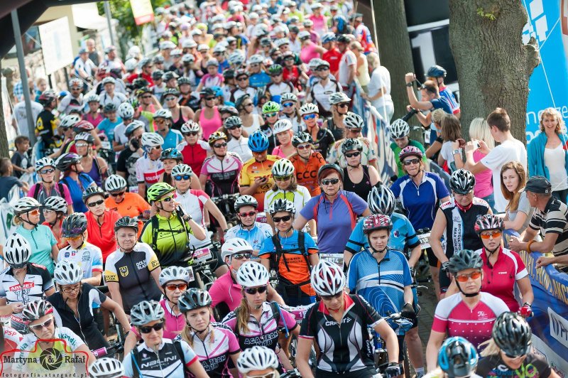 Maraton dookoła jeziora Miedwie jest naszym ulubionym wyścigiem. Trasa ma 58km i wiedzie głównie drogami asfaltowymi i po płytach jumbo około 13km.W tym roku była rekordowa liczba uczestników ponad 1624, w tym kobiet po 60 -tce. Na zdjęciu celowo pokazaliśmy te dzielne silne kobietki. Pawełek i w tym roku pojechał ze mną wyścig, rezygnując z rywalizacji w swojej kategorii. Niestety moje wyniki były duż0 gorsze niż w zeszłym roku, pomimo pomocy Pawełka, dłuższych i częstszych treningów przed.