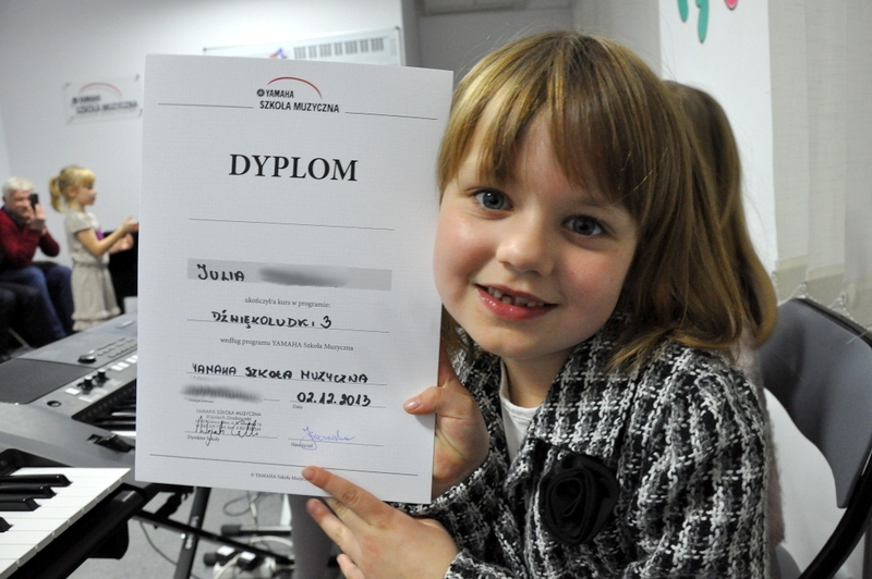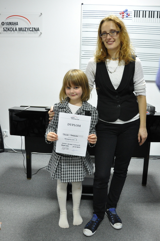 Juleczka ma na swoim koncie wielkie osiągnięcie. Ukończyła trzeci podręcznik kursu Dźwiękoludków w szkole muzycznej Yamaha. Zagrała na popisie końcowym dwa utworki solo na keyboard, a oprócz tego zaśpiewała wspólnie z innymi dziećmi wiele solfeży i piosenkę. Szkoła muzyczna dla naszej Julii jest nie tylko zabawą, ale też pracą nad utworkami w domu. Jest pod tym względem bardzo zdyscyplinowana i należy jej się za to wielka pochwała.