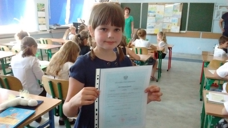 Uff! Rok szkolny 2015/2016 za nami. Dziewczyny ukończyły szkołę podstawową i muzyczną, tj. drugą i piąta klasę ze wspaniałymi osiągnięciami. Obie otrzymały ocenę bardzo dobrą z fortepianu. Marlenka uzyskała świadectwo z czerwonym paskiem w szkole podstawowej i muzycznej. Natomiast Julii zabrakło oceny bardzo dobrej z rytmiki do „czerwonego paska”, ale dla nas swoją pracą w pełni na niego zasłużyła. Jesteśmy dumni z Marlenki i Julii, ponieważ ich ciężka praca i wytrwałość pokazała, że pomimo różnych trudności i zwątpienia, mają wspaniałe charaktery i obie są bardzo utalentowane.