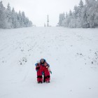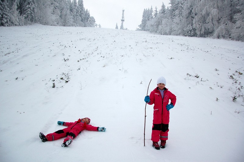 Zdobywanie góry okazało się dla dziewczyn dosyć wyczerpującym spacerem, choć nie tak trudnym jak się obawialiśmy przed wyjściem na szlak. Duża różnica wzniesień i śnieg po łydki nie zniechęciły jednak Marlenki i Juleczki do dotarcia na sam szczyt i wbicia wcześniej przygotowanych w domku chorągiewek. Podziwialiśmy jak pięknie były ośnieżone drzewa, tworząc scenerię jak z „Królowej Śniegu”. Mijaliśmy ruiny kapliczek, zaglądając do środka. Ten długi spacer w góry pozwolił nam na oderwanie się od codziennych spraw i obowiązków i podładował akumulatory. Dla dziewczyn była to niezwykła przygoda. Były zadowolone, że weszły na taką wielką górę.